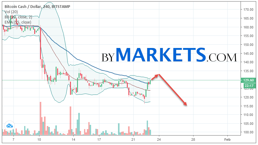 As part of the Bitcoin Cash forecast, a test of level 132 is expected. Where should we expect an attempt to continue the fall of BCH/USD and the further development of the downward trend. The purpose of this movement is the area near the level of 115. The conservative area for sales of Bitcoin Cash is located near the upper border of the Bollinger Bands indicator strip at level 133.