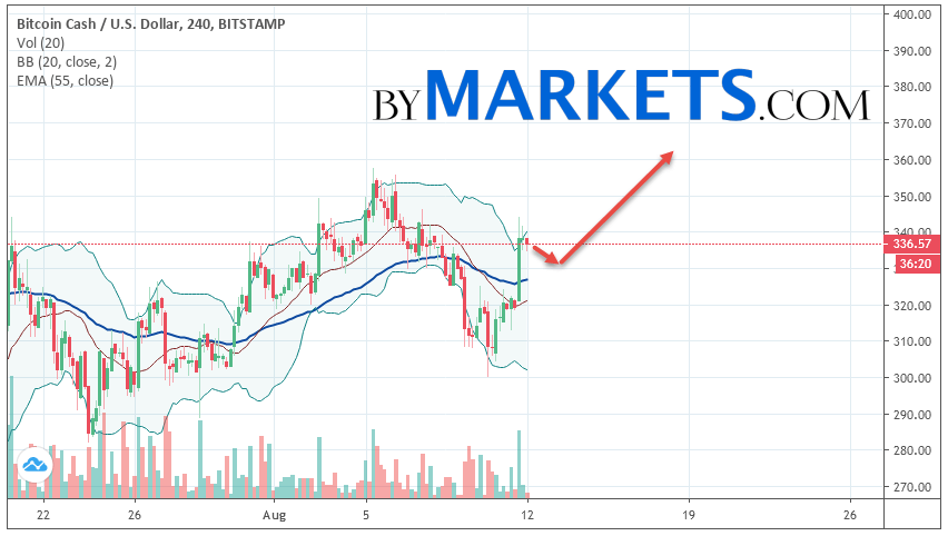 As part of the Bitcoin Cash forecast, a test of level 332 is expected. Where can we expect an attempt to continue the growth of BCH/USD and the further development of an upward trend. The purpose of this movement is the area near the level of 362. The conservative area for buying Bitcoin Cash is located near the lower border of the Bollinger Bands indicator strip at 300.