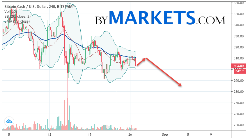 Bitcoin Cash (BCH/USD) forecast and analysis on August 28, 2019 implies a test level of 310. Further, it is expected to continue falling to the area below the level of 285. The conservative area for selling Bitcoin Cash is located area of 316. Canceling the option of falling cryptocurrency will be a breakdown of the level of 325. In this case, we can expect continuation growth.