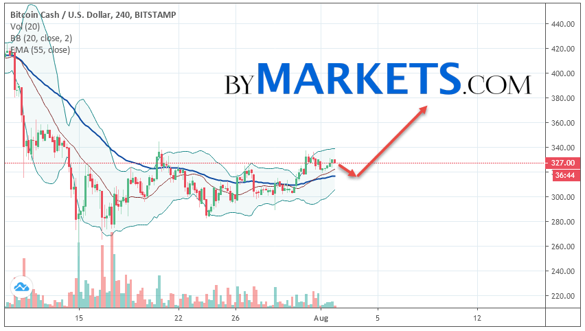 Cryptocurrency Bitcoin Cash (BCH/USD) is trading at 327. Cryptocurrency quotes are trading above the moving average with a period of 55. This indicates a bullish trend on Bitcoin Cash. At the moment, cryptocurrency quotes are moving near the middle border of the Bollinger Bands indicator stripes.