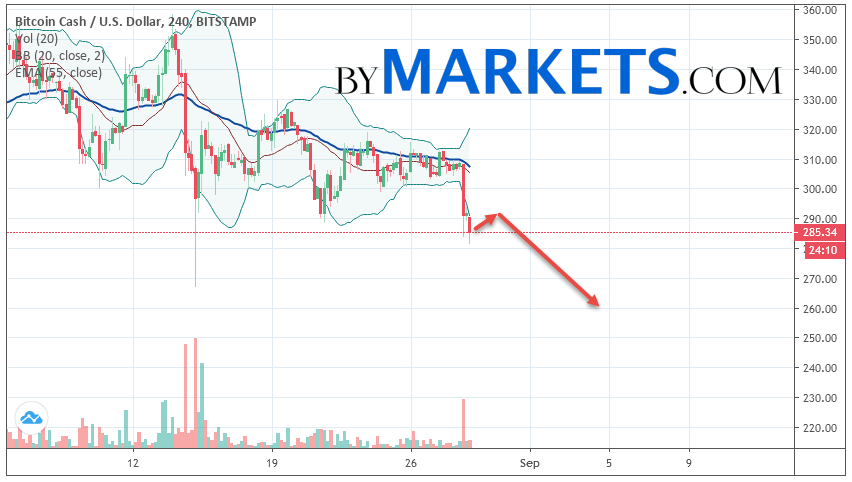Bitcoin Cash (BCH/USD) forecast and analysis on August 30, 2019 implies a test level of 295. Further, it is expected to continue falling to the area below the level of 260. The conservative area for selling Bitcoin Cash is located area of 320. Canceling the option of falling cryptocurrency will be a breakdown of the level of 325. In this case, we can expect continuation growth.