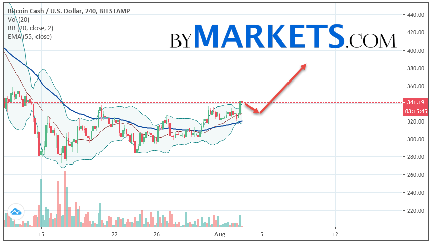 Bitcoin Cash (BCH/USD) forecast and analysis on August 4, 2019 implies a test level of 330. Further growth is expected to continue to the area above the level of 385. The conservative area for buying Bitcoin Cash is located area of 320. Cancellation of the growth option of cryptocurrency will be a breakdown of the level of 315. In this case, we should expect a further fall.