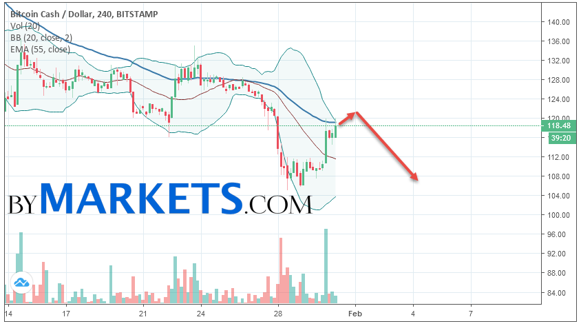 Cryptocurrency Bitcoin Cash (BCH/USD) is trading at 118. Cryptocurrency quotes are trading below the moving average with a period of 55. This indicates a bearish trend on Bitcoin Cash. At the moment, cryptocurrency quotes are moving near the upper border of the Bollinger Bands indicator.