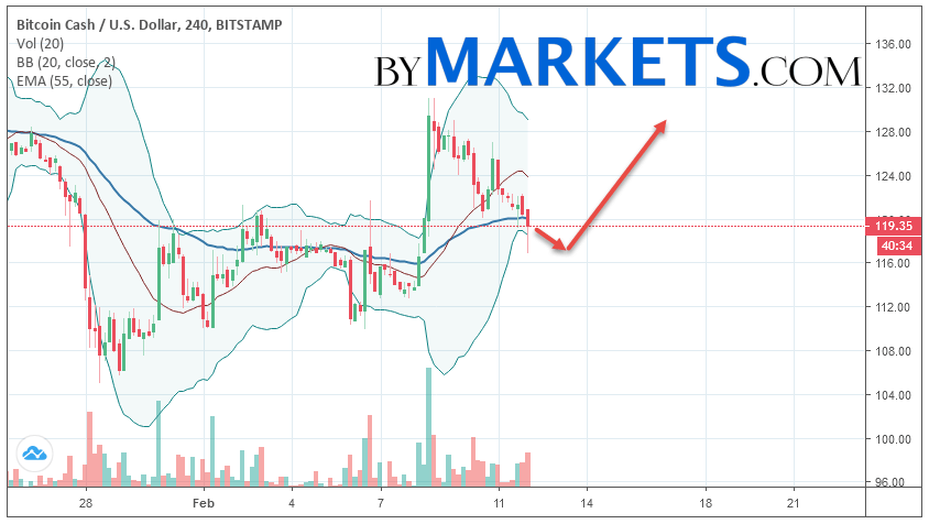 As part of the Bitcoin Cash forecast, the test is expected at the level of 117. Where should we expect an attempt to continue the growth of BCH/USD and further development of the upward trend. The purpose of this movement is the area near the level of 129. The conservative area for buying of Bitcoin Cash is located near the lower border of the Bollinger Bands indicator strip at level 116.