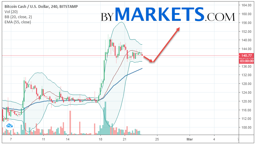 As part of the Bitcoin Cash forecast, the test level is expected to be 137. Where should we expect an attempt to continue the growth of BCH/USD and further development of the upward trend. The purpose of this movement is the area near the level 153. The conservative area for buying of Bitcoin Cash is located near the lower border of the Bollinger Bands indicator strip at level 135.