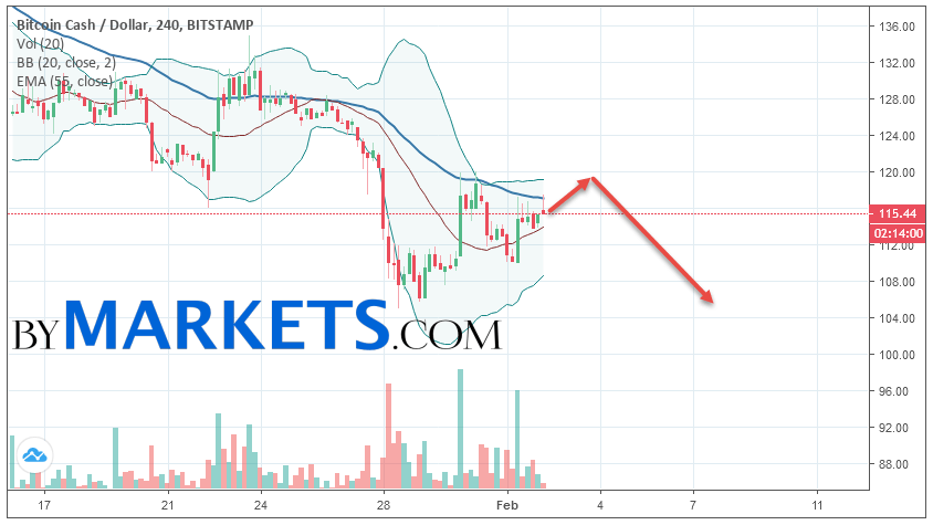 Cryptocurrency Bitcoin Cash (BCH/USD) is trading at 115. Cryptocurrency quotes are trading below the moving average with a period of 55. This indicates a bearish trend on Bitcoin Cash. At the moment, cryptocurrency quotes are moving near the middle border of the Bollinger Bands indicator.