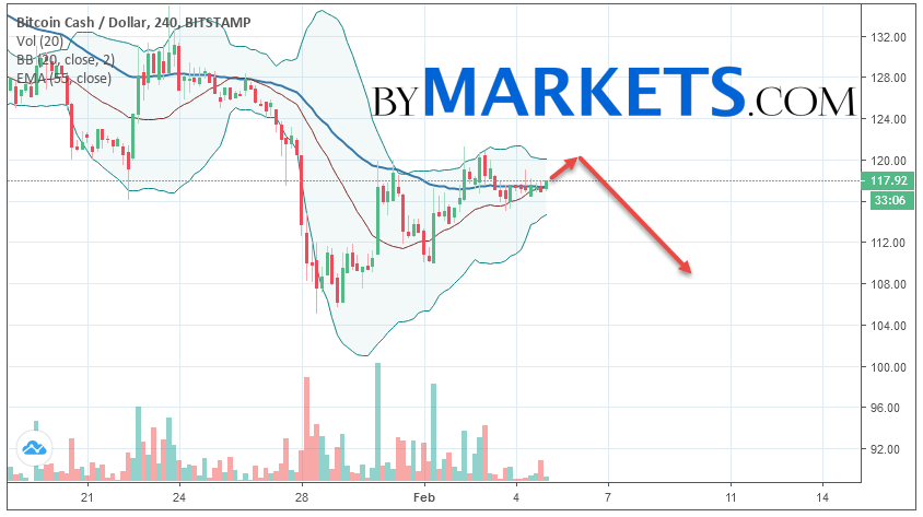 Bitcoin Cash (BCH/USD) forecast and analysis on February 6, 2019 implies a test level of 120. Further, it is expected to continue falling to the area below the level of 109. The conservative area for selling Bitcoin Cash is located area of 122. Cancellation of the option of falling cryptocurrency will be a breakdown of the level of 125. In this case, we should expect continued growth.