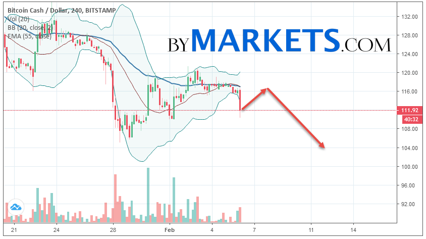 Bitcoin Cash (BCH/USD) forecast and analysis on February 7, 2019 implies a test level of 117. Further, it is expected to continue falling to the area below the level of 104. The conservative area for selling Bitcoin Cash is located area of 120. Cancellation of the option of falling cryptocurrency will be a breakdown of the level of 122. In this case, we should expect continued growth.