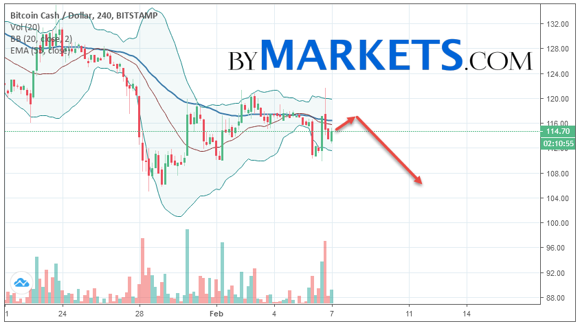 Bitcoin Cash (BCH/USD) forecast and analysis on February 8, 2019 implies a test level of 117. Further, it is expected to continue falling to the area below the level of 106. The conservative area for selling Bitcoin Cash is located area of 120. Cancellation of the option of falling cryptocurrency will be a breakdown of the level of 122. In this case, we should expect continued growth.