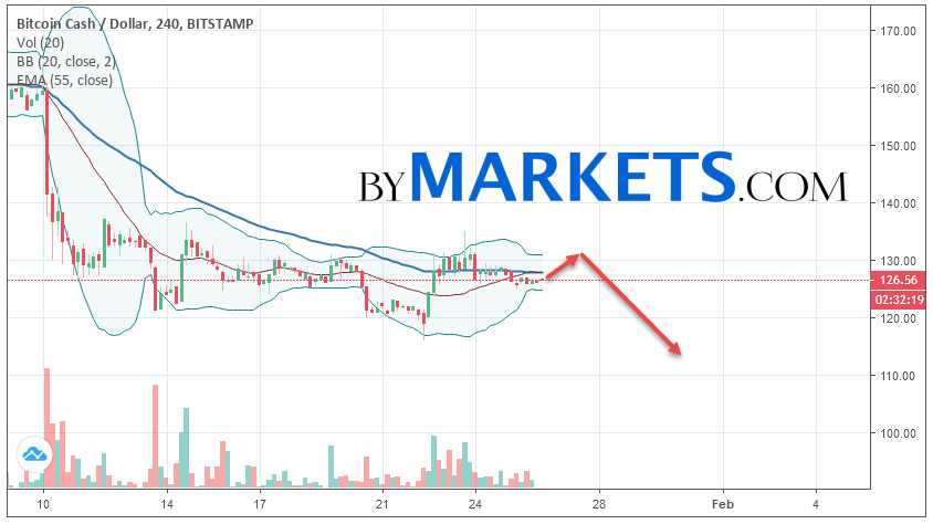 Bitcoin Cash (BCH/USD) forecast and analysis on January 27, 2019 implies a test level of 132. Further, it is expected to continue falling to the area below the level of 113. The conservative area for selling Bitcoin Cash is located area of 135. Cancellation of the option of falling cryptocurrency will be a breakdown of the level of 138. In this case, we should expect continued growth.