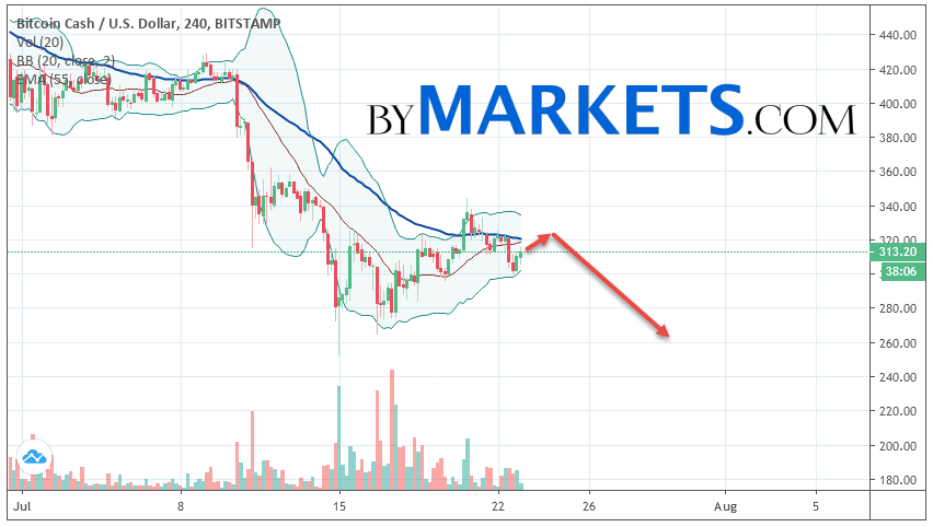 As part of the Bitcoin Cash forecast, a test of level 325 is expected. Where should we expect an attempt to continue the fall of BCH/USD and the further development of the downward trend. The purpose of this movement is the area near the level of 262. The conservative area for sales of Bitcoin Cash is located near the upper border of the Bollinger Bands indicator at the level of 335.