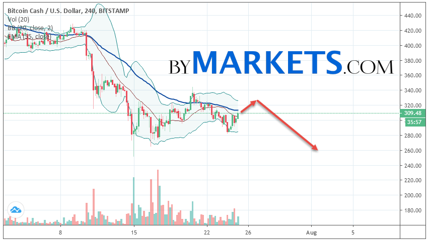 Cryptocurrency Bitcoin Cash (BCH/USD) is trading at 309. Cryptocurrency quotes are trading below the moving average with a period of 55. This indicates a bearish trend on Bitcoin Cash. At the moment, cryptocurrency quotes are moving near the middle border of the Bollinger Bands indicator.