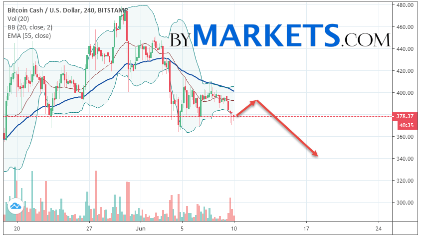 Bitcoin Cash (BCH/USD) forecast and analysis on June 11, 2019 implies a test level of 392. Further, it is expected to continue falling to the area below the level of 340. The conservative area for selling Bitcoin Cash is located area of 405. Canceling the option of falling cryptocurrency will be a breakdown of the level of 415. In this case, we can expect continuation growth.