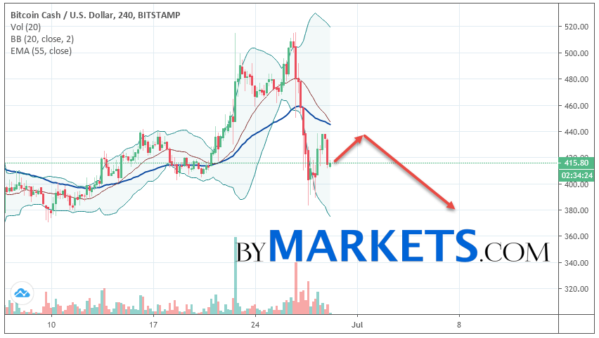 Bitcoin Cash (BCH/USD) forecast and analysis on June 30, 2019 implies a test level of 430. Further, it is expected to continue falling to the area below the level of 380. The conservative area for selling Bitcoin Cash is located area of 520. Canceling the option of falling cryptocurrency will be a breakdown of the level of 530. In this case, we can expect continuation growth.
