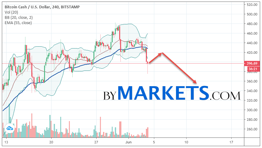 Bitcoin Cash (BCH/USD) forecast and analysis on June 5, 2019 implies a test level of 420. Further, it is expected to continue falling to the area below the level of 358. The conservative area for selling Bitcoin Cash is located area of 460. Canceling the option of falling cryptocurrency will be a breakdown of the level of 470. In this case, we can expect continuation growth.