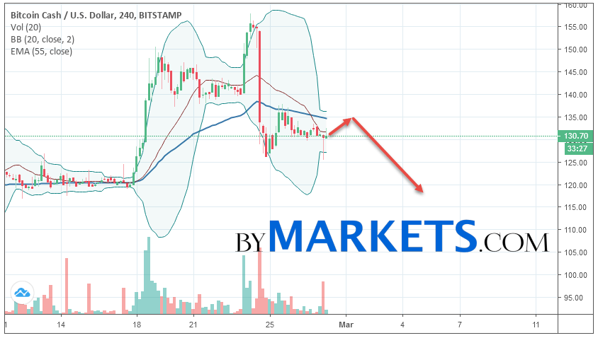 Bitcoin Cash (BCH/USD) forecast and analysis on March 1, 2019 implies a test level of 136. Further, it is expected to continue falling to the area below the level of 118. The conservative area for selling Bitcoin Cash is located area of 136. Canceling the option of falling cryptocurrency will be a breakdown of the level of 142. In this case, we can expect continuation growth.