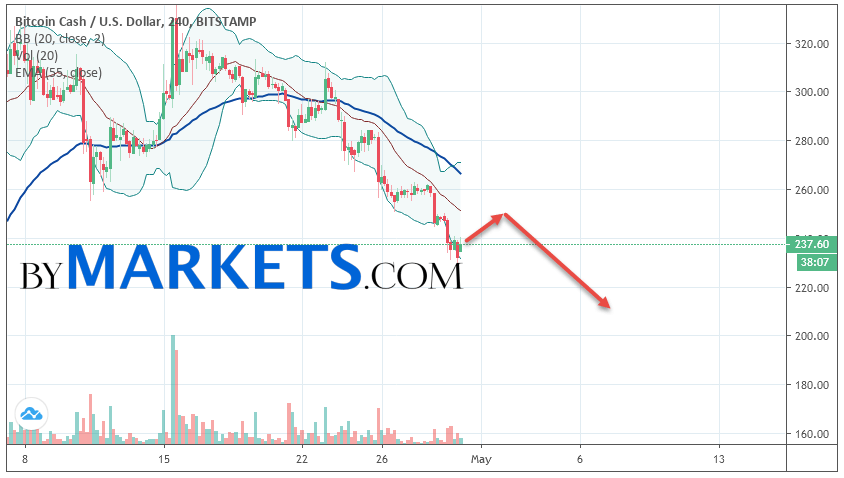 Bitcoin Cash (BCH/USD) forecast and analysis on May 1, 2019 implies a test level of 250. Further, it is expected to continue falling to the area below the level of 210. The conservative area for selling Bitcoin Cash is located area of 270. Canceling the option of falling cryptocurrency will be a breakdown of the level of 275. In this case, we can expect continuation growth.