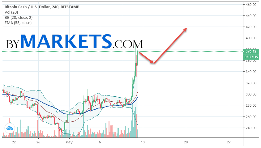 As part of the Bitcoin Cash forecast, a test of level 355 is expected. Where should we expect an attempt to continue the growth of BCH/USD and the further development of the upward trend. The purpose of this movement is the area near the level of 415. The conservative area for buying of Bitcoin Cash is located near the lower border of the Bollinger Bands indicator strip at level 250.