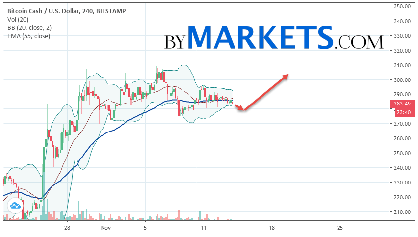 As part of the Bitcoin Cash forecast, a test of level 278 is expected. Where can we expect an attempt to continue the growth of BCH/USD and the further development of an upward trend. The purpose of this movement is the area near the level of 305. The conservative area for buying Bitcoin Cash is located near the lower border of the Bollinger Bands indicator strip at the level of 275.