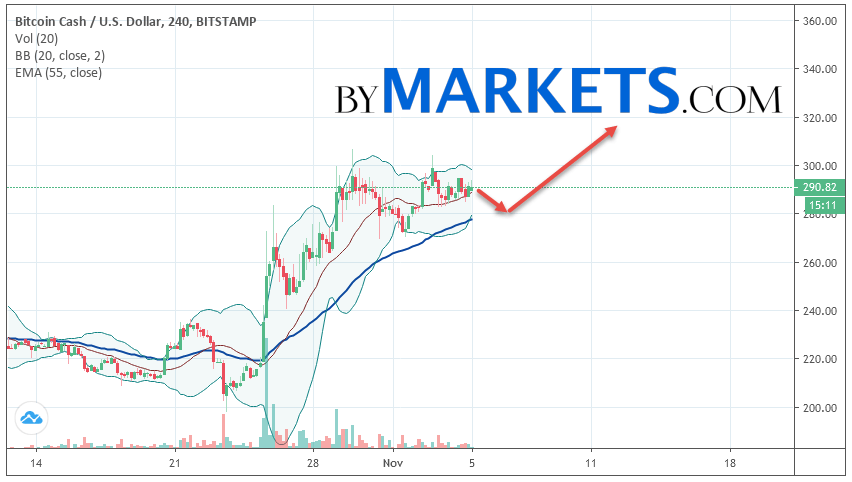 As part of the Bitcoin Cash forecast, a test of level 280 is expected. Where can we expect an attempt to continue the growth of BCH/USD and the further development of an upward trend. The purpose of this movement is the area near the level of 318. The conservative area for buying Bitcoin Cash is located near the lower border of the Bollinger Bands indicator strip at the level of 278.