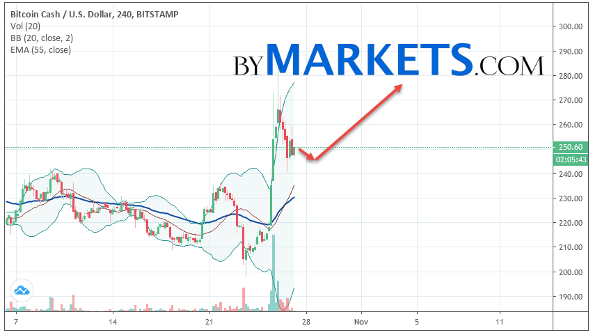 As part of the Bitcoin Cash forecast, a test of level 246 is expected. Where can we expect an attempt to continue the growth of BCH/USD and the further development of an upward trend. The purpose of this movement is the area near the level of 275. The conservative area for buying Bitcoin Cash is located near the lower border of the Bollinger Bands indicator strip at the level of 193.