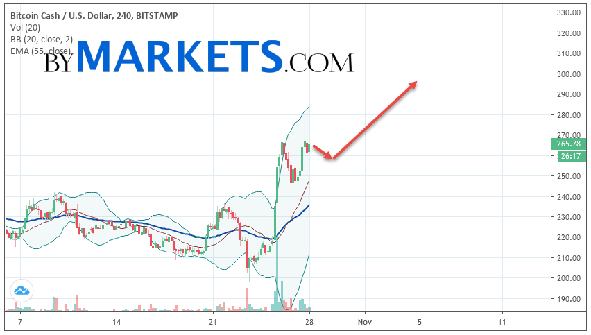 As part of the Bitcoin Cash forecast, a test of level 258 is expected. Where can we expect an attempt to continue the growth of BCH/USD and the further development of an upward trend. The purpose of this movement is the area near the level of 295. The conservative area for buying Bitcoin Cash is located near the lower border of the Bollinger Bands indicator strip at the level of 210.
