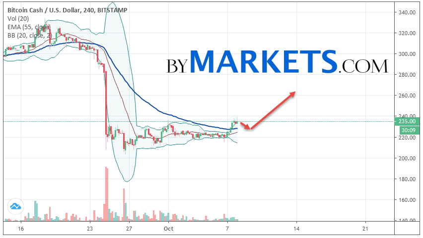 As part of the Bitcoin Cash forecast, a test of level 230 is expected. Where can we expect an attempt to continue the growth of BCH/USD and the further development of an upward trend. The purpose of this movement is the area near the level of 265. The conservative area for buying Bitcoin Cash is located near the lower border of the Bollinger Bands indicator strip at the level of 218.
