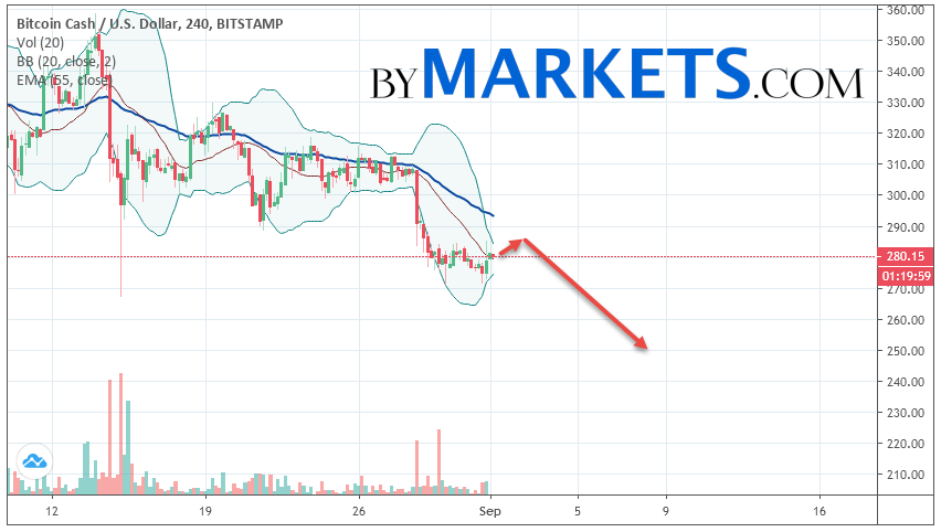 Cryptocurrency Bitcoin Cash (BCH/USD) is trading at 280. Cryptocurrency quotes are trading below the moving average with a period of 55. This indicates a bearish trend on Bitcoin Cash. At the moment, cryptocurrency quotes are moving near the middle border of the Bollinger Bands indicator stripes.