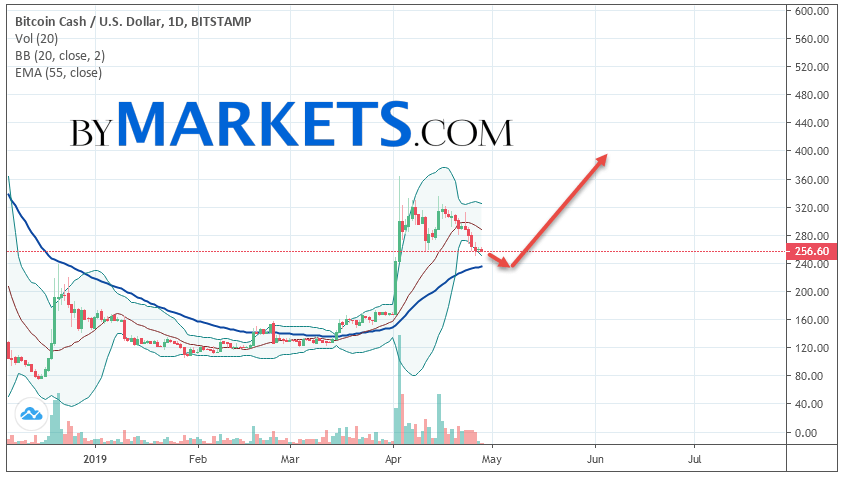 As part of the Bitcoin Cash forecast, a test of level 235 is expected. Where should we expect an attempt to continue the growth of BCH/USD and the further development of the upward trend. The purpose of this movement is the area near the level of 390. The conservative area for buying of Bitcoin Cash is located near the lower border of the Bollinger Bands indicator strip at level 230.