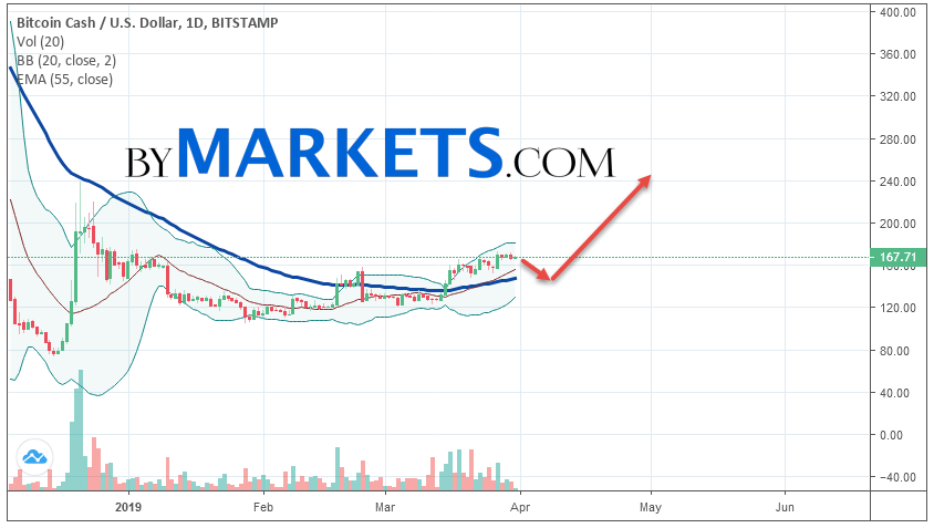 As part of the Bitcoin Cash forecast, a test of level 140 is expected. Where should we expect an attempt to continue the growth of BCH/USD and the further development of the upward trend. The purpose of this movement is the area near the level of 250. The conservative area for buying of Bitcoin Cash is located near the lower border of the Bollinger Bands indicator strip at level 130.