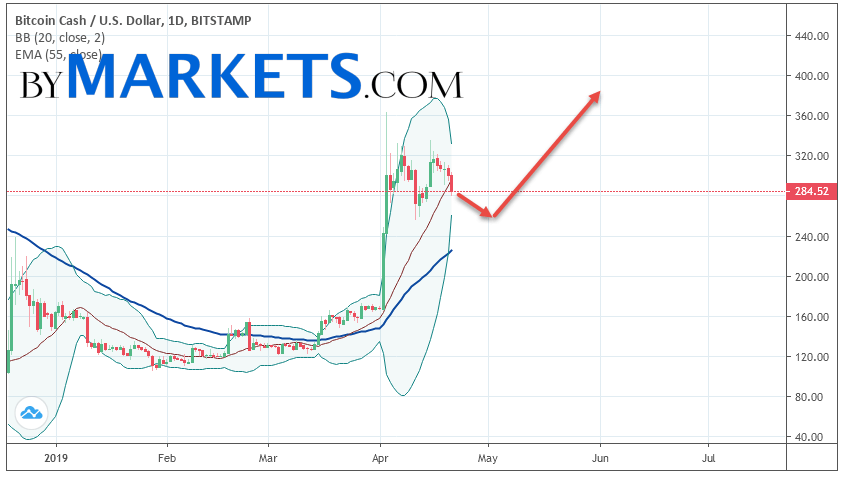 As part of the Bitcoin Cash forecast, a test level of 260 is expected. Where should we expect an attempt to continue the growth of BCH/USD and the further development of the upward trend. The purpose of this movement is the area near the level of 380. The conservative area for buying of Bitcoin Cash is located near the lower border of the Bollinger Bands indicator strip at level 250.