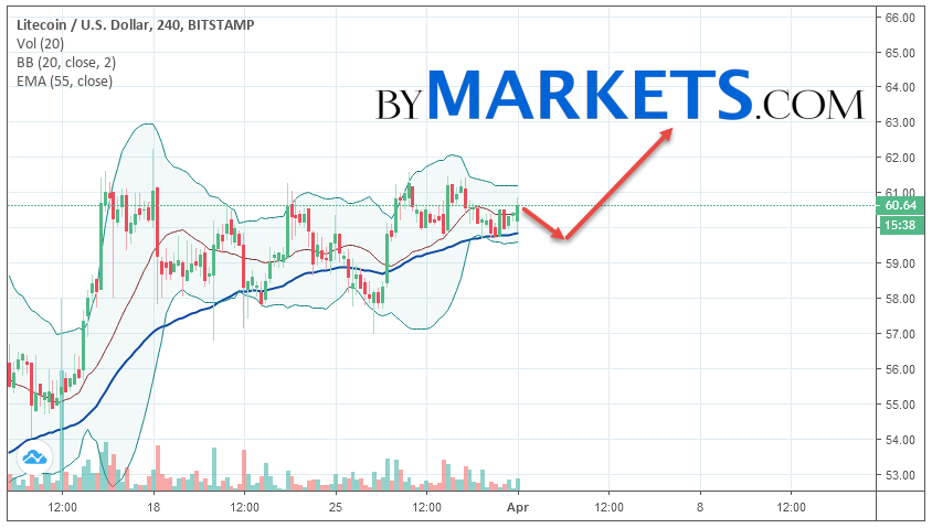Litecoin (LTC/USD) forecast and analysis on April 2, 2019 suggests a test level of 59.70. Further growth is expected to continue to the area above the level of 62.80. The conservative area for buying Litecoin is located area of 59.50. The cancellation of the cryptocurrency growth option will be the breakdown of the level of 57.60. In this case, we should expect the continuation of the fall.