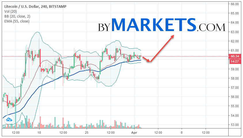 Litecoin (LTC/USD) forecast and analysis on April 3, 2019 suggests a test level of 59.80. Further growth is expected to continue to the area above the level of 62.50. The conservative area for buying Litecoin is located area of 59.40. The cancellation of the cryptocurrency growth option will be the breakdown of the level of 58.20. In this case, we should expect the continuation of the fall.