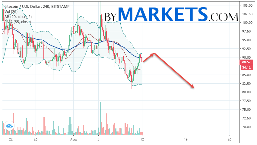Litecoin (LTC/USD) forecast and analysis on August 13, 2019 implies a test level of 91.20. Further, it is expected to continue falling to the area below the level of 81.30. The conservative area for selling Litecoin is located area of 91.80. Canceling the option of falling cryptocurrency will be a breakdown of the level of 92.40. In this case, we can expect continuation growth.