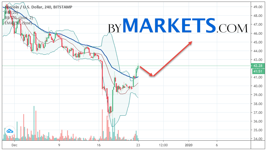 Litecoin (LTC/USD) forecast and analysis on December 24, 2019 implies a test level of 41.10. Further growth is expected to continue to the area above the level of 45.10. The conservative area for buying Litecoin is located area of 38.60. The cancellation of the cryptocurrency growth option will be the breakdown of the level of 37.60. In this case, we should expect the continuation of the fall.