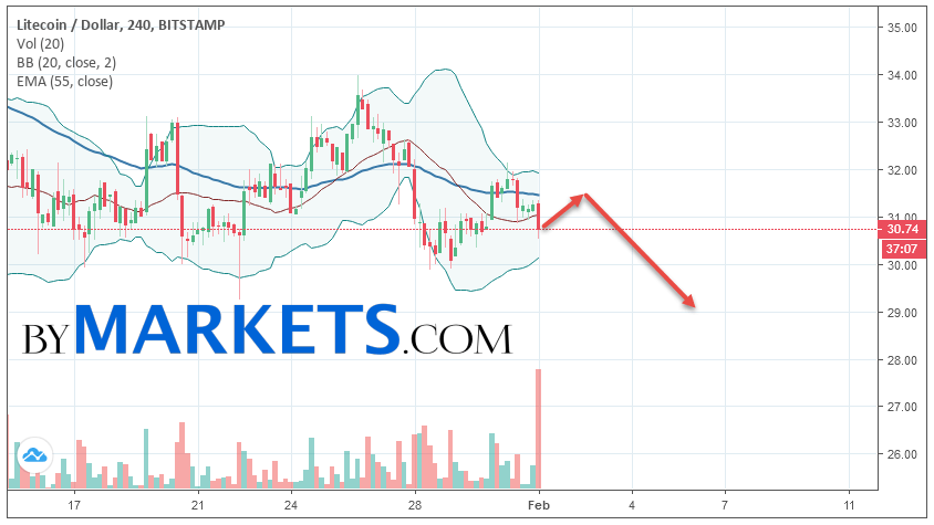 Litecoin (LTC/USD) forecast and analysis on February 2, 2019 implies a test level of 31.50. Further, it is expected to continue falling to the area below the level of 29.20. The conservative area for selling Litecoin is located area of 32.00. Cancellation of the option of falling cryptocurrency will be the breakdown level 33.50. In this case, we can expect continuation growth.