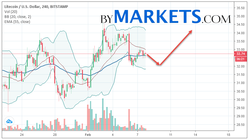 Litecoin (LTC/USD) forecast and analysis on February 9, 2019 implies a test level of 32.10. Further, growth is expected to continue to the area above the level of 34.20. The conservative area for buying Litecoin is located area of 31.80. Cancellation options for the growth of cryptocurrency will make a breakdown level of 31.30. In this case, we should expect the continuation of the fall.