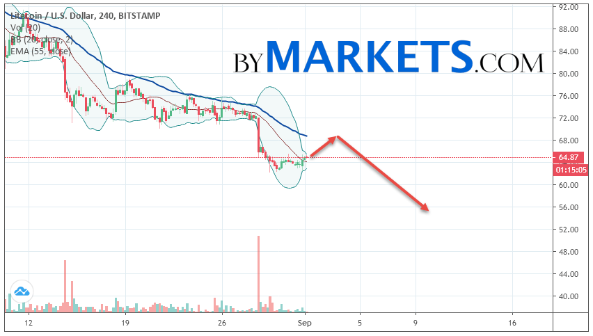 Litecoin (LTC/USD) forecast and analysis on September 2, 2019 implies a test level of 68.20. Further, it is expected to continue falling to the area below the level of 55.80. The conservative area for selling Litecoin is located area of 70.00. Canceling the option of falling cryptocurrency will be a breakdown of the level of 72.50. In this case, we can expect continuation growth.
