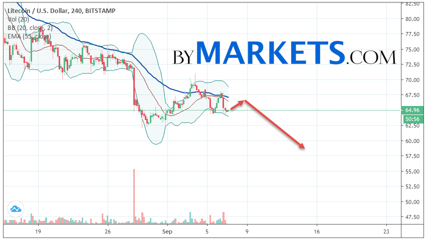Litecoin (LTC/USD) forecast and analysis on September 8, 2019 implies a test level of 66.20. Further, it is expected to continue falling to the area below the level of 58.40. The conservative area for selling Litecoin is located area of 68.50. Canceling the option of falling cryptocurrency will be a breakdown of the level of 70.60. In this case, we can expect continuation growth.