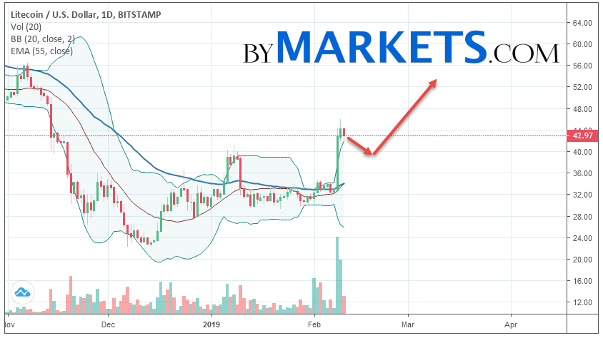 Litecoin (LTC/USD) weekly forecast on February 11 — 17, 2019 implies a test level of 39.50. Further growth is expected to continue to the area above the level of 52.20. The conservative area for buying Litecoin is located area of 26.00. The cancellation of the growth option of cryptocurrency will be the breakdown of the level of 22.50. In this case, we should expect the continuation of the fall.