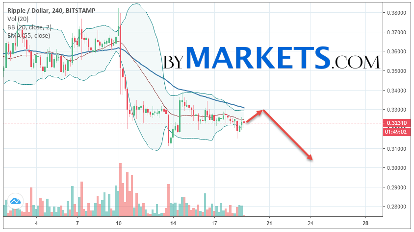 As part of the Ripple course forecast, a test level of 0.3300 is expected. Where should we expect an attempt to continue the fall of XRP/USD and the further development of the downward trend. The purpose of this movement is the area near the level of 0.3050. The conservative sales area for Ripple is located near the upper border of the Bollinger Bands indicator strip at 0.3320.