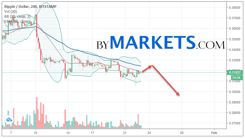 As part of the Ripple course forecast, a test level of 0.3250 is expected. Where should we expect an attempt to continue the fall of XRP/USD and the further development of the downward trend. The purpose of this movement is the area near the level of 0.2970. The conservative sales area for Ripple is located near the upper border of the Bollinger Bands indicator at 0.3270.