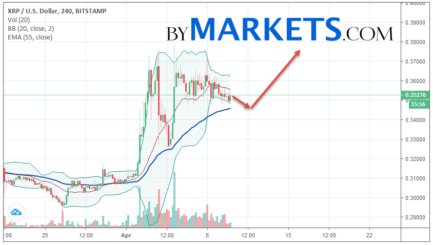 As part of the Ripple course forecast, a test level of 0.3460 is expected. Where should we expect an attempt to continue the growth of XRP/USD and the further development of the upward trend. The purpose of this movement is the area near the level of 0.3740. The conservative Ripple buying area is located near the lower border of the Bollinger Bands indicator strip at a level of 0.3440.