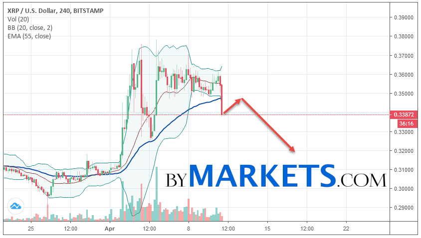 Ripple (XRP/USD) forecast and analysis on April 12, 2019 implies a test level of 0.3470. Further, it is expected to continue falling to the area below the level of 0.3180. The conservative area for selling Ripple is located area of 0.3650. Canceling the option of falling cryptocurrency will be a breakdown of the level of 0.3680. In this case, we should expect continued growth.