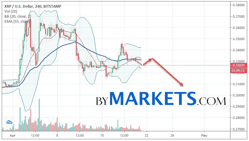 Cryptocurrency Ripple (XRP/USD) is trading at 0.3263. Cryptocurrency quotes are trading below the moving average with a period of 55. This indicates a bearish trend on Ripple. At the moment, cryptocurrency quotes are moving near the lower border of the Bollinger Bands indicator bands.