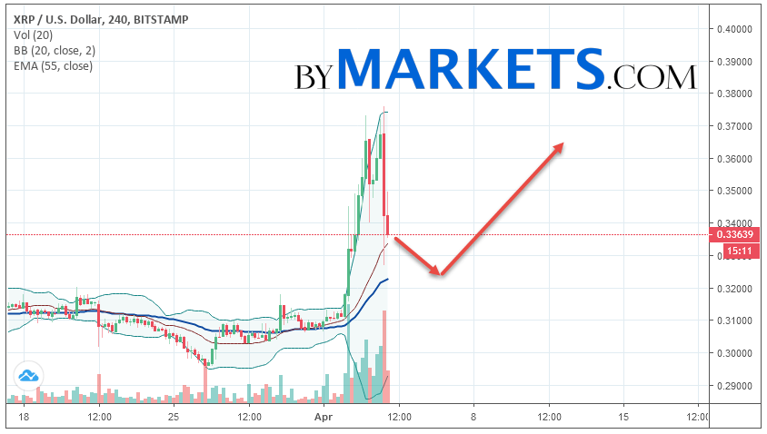 Ripple (XRP/USD) forecast and analysis on April 5, 2019 implies a test level of 0.3240. Further, growth is expected to continue to the area above the level of 0.3630. The conservative area for buying Ripple is located area of 0.2930. The cancellation of the option of cryptocurrency growth will be a breakdown of the level of 0.2900. In this case, we should expect the continuation of the fall.
