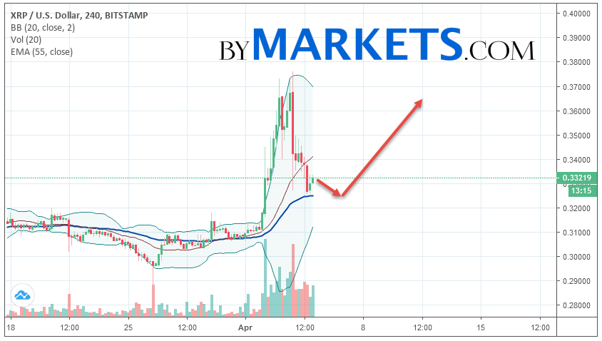 As part of the forecast Ripple course is expected to test the level of 0.3250. Where should we expect an attempt to continue the growth of XRP/USD and the further development of the upward trend. The purpose of this movement is the area near the level of 0.3640. The conservative Ripple buying area is located near the lower border of the Bollinger Bands indicator strip at 0.3120.