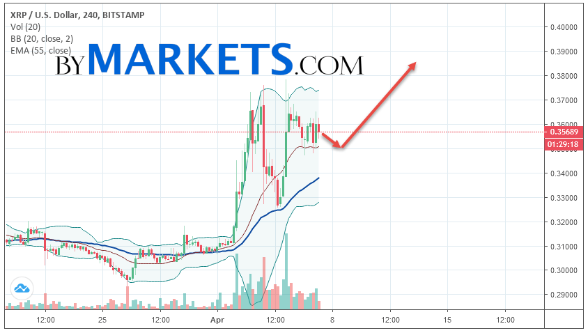 As part of the Ripple course forecast, a test level of 0.3500 is expected. Where should we expect an attempt to continue the growth of XRP/USD and the further development of the upward trend. The purpose of this movement is the area near the level of 0.3840. The conservative Ripple buying area is located near the lower border of the Bollinger Bands indicator strip at 0.3280.