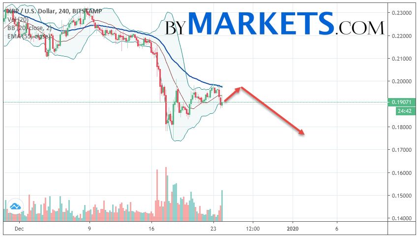 Ripple (XRP/USD) forecast and analysis on December 25, 2019 implies a test level of 0.1970. Further, it is expected to continue falling to the area below the level of 0.1760. The conservative area for selling Ripple is located area of 0.1980. Canceling the option of falling cryptocurrency will be a breakdown of the level of 0.2050. In this case, we should expect continued growth.