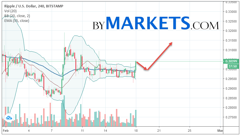 As part of the Ripple course forecast, a test level of 0.2990 is expected. Where can we expect an attempt to continue the growth of XRP/USD and the further development of the upward trend. The purpose of this movement is the area near the level of 0.3140. The conservative Ripple buying area is located near the lower border of the Bollinger Bands indicator strip at 0.2950.